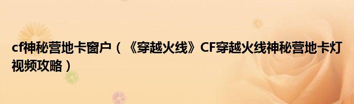 导读 大家好,太太来为大家解答以上问题。cf神秘营地卡窗户,《穿越火线》CF穿越火线神秘营地卡灯视频攻略很多人还不知道,现在让我们一起来看看