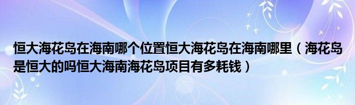 恒大海花岛在海南哪个位置恒大海花岛在海南哪里(海花岛是恒大的吗恒大海南海花岛项目有多耗钱)