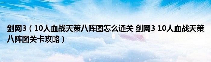 剑网3(10人血战天策八阵图怎么通关 剑网3 10人血战天策八阵图关卡攻略)