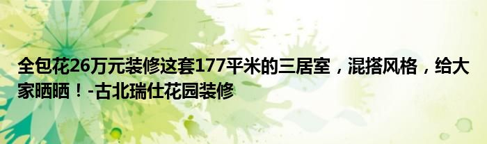 大家好,今天乐乐来为大家解答以上问题。全包花26万元装修这套177平米的三居室,混搭风格,给大家晒晒!-古北瑞仕花园装修很多人还不知道,现在让我们一起来看看吧!