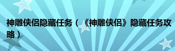 神雕侠侣隐藏任务(《神雕侠侣》隐藏任务攻略)