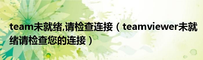 team未就绪,请检查连接(teamviewer未就绪请检查您的连接)
