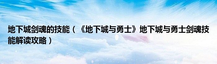 地下城剑魂的技能(《地下城与勇士》地下城与勇士剑魂技能解读攻略)