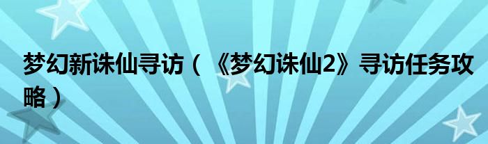 梦幻新诛仙寻访(《梦幻诛仙2》寻访任务攻略)