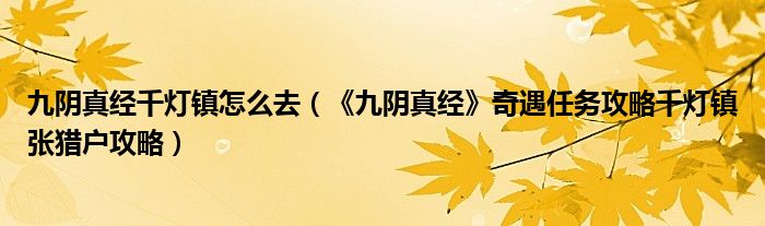 九阴真经千灯镇怎么去(《九阴真经》奇遇任务攻略千灯镇张猎户攻略)