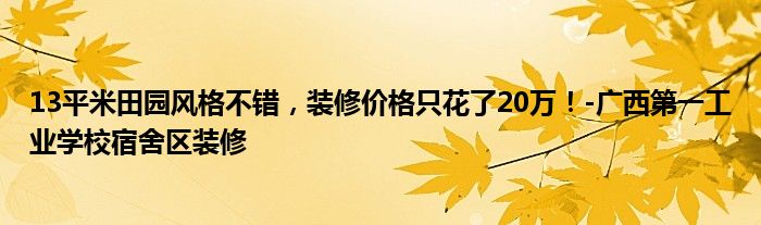 大家好,今天乐乐来为大家解答以上问题。13平米田园风格不错,装修价格只花了20万!-广西第一工业学校宿舍区装修很多人还不知道,现在让我们一起来看看吧!