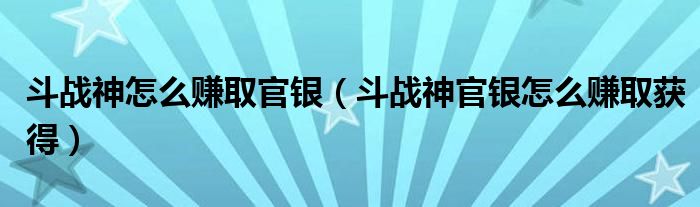 斗战神怎么赚取官银(斗战神官银怎么赚取获得)