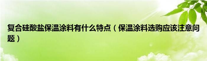 复合硅酸盐保温涂料有什么特点(保温涂料选购应该注意问题)