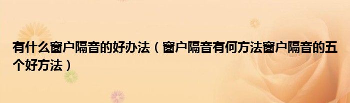 有什么窗户隔音的好办法(窗户隔音有何方法窗户隔音的五个好方法)