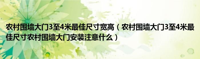 农村围墙大门3至4米最佳尺寸宽高(农村围墙大门3至4米最佳尺寸农村围墙大门安装注意什么)