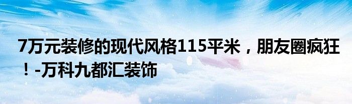 导读 大家好,今天乐乐来为大家解答以上问题。7万元装修的现代风格115平米,朋友圈疯狂!-万科九都汇装饰很多人还不知道,现在让我们一起来看看