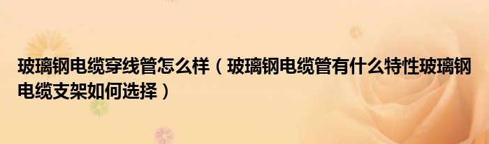 玻璃钢电缆穿线管怎么样(玻璃钢电缆管有什么特性玻璃钢电缆支架如何选择)