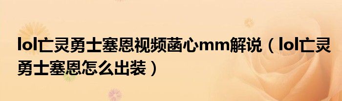 导读 大家好,太太来为大家解答以上问题。lol亡灵勇士塞恩视频菡心mm解说,lol亡灵勇士塞恩怎么出装很多人还不知道,现在让我们一起来看看吧!1