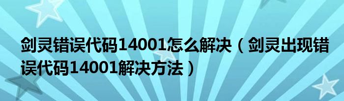 导读 大家好,太太来为大家解答以上问题。剑灵错误代码14001怎么解决,剑灵出现错误代码14001解决方法很多人还不知道,现在让我们一起来看看吧!