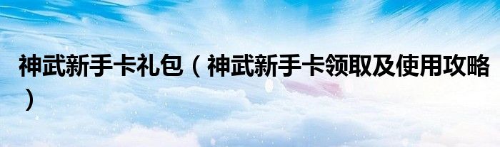 神武新手卡礼包(神武新手卡领取及使用攻略)
