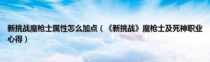 导读 大家好,太太来为大家解答以上问题。新挑战魔枪士属性怎么加点,《新挑战》魔枪士及死神职业心得很多人还不知道,现在让我们一起来看看吧!