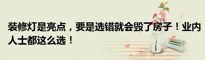 装修灯是亮点,要是选错就会毁了房子!业内人士都这么选!