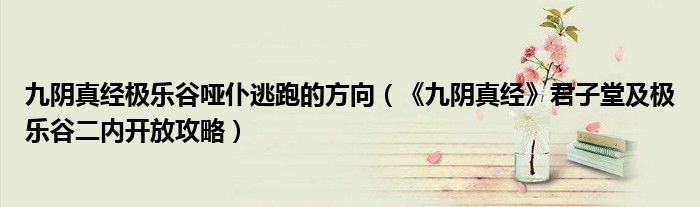 九阴真经极乐谷哑仆逃跑的方向(《九阴真经》君子堂及极乐谷二内开放攻略)
