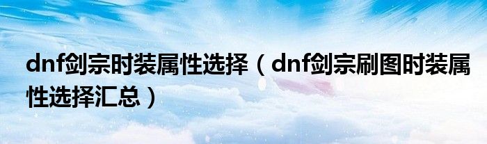 dnf剑宗时装属性选择(dnf剑宗刷图时装属性选择汇总)
