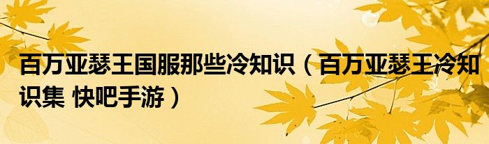 导读 大家好,太太来为大家解答以上问题。百万亚瑟王国服那些冷知识,百万亚瑟王冷知识集 快吧手游很多人还不知道,现在让我们一起来看看吧!1