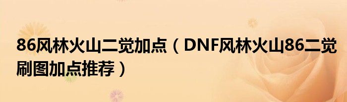 86风林火山二觉加点(DNF风林火山86二觉刷图加点推荐)