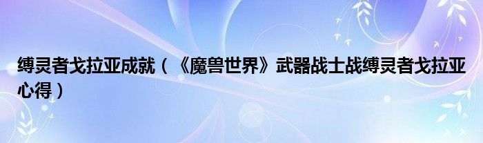 导读 大家好,太太来为大家解答以上问题。缚灵者戈拉亚成就,《魔兽世界》武器战士战缚灵者戈拉亚心得很多人还不知道,现在让我们一起来看看吧!