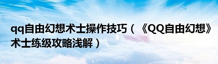 qq自由幻想术士操作技巧(《QQ自由幻想》术士练级攻略浅解)