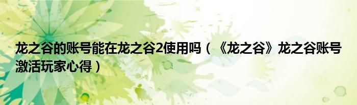 龙之谷的账号能在龙之谷2使用吗(《龙之谷》龙之谷账号激活玩家心得)