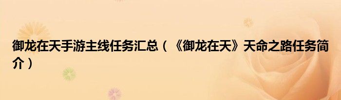 御龙在天手游主线任务汇总(《御龙在天》天命之路任务简介)