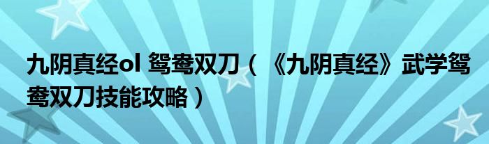 九阴真经ol 鸳鸯双刀(《九阴真经》武学鸳鸯双刀技能攻略)