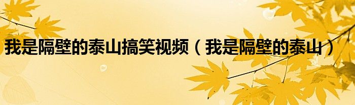 我是隔壁的泰山搞笑视频(我是隔壁的泰山)
