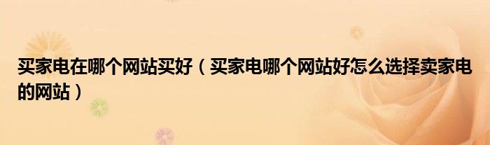 买家电在哪个网站买好(买家电哪个网站好怎么选择卖家电的网站)