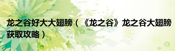 龙之谷好大大翅膀(《龙之谷》龙之谷大翅膀获取攻略)