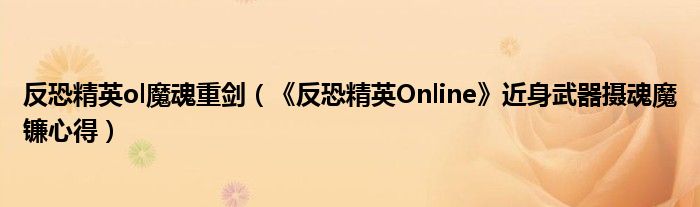 导读 大家好,太太来为大家解答以上问题。反恐精英ol魔魂重剑,《反恐精英Online》近身武器摄魂魔镰心得很多人还不知道,现在让我们一起来看看吧