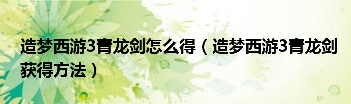 1、造梦西游3青龙剑怎么得?有什么用?很多玩家和小编欧巴一样都是第一次玩这款游戏,还不是很了解造梦西游3中的法宝。那么下面,小编就来为玩家们简单的介绍一下造梦西游3中的法宝—青龙剑。