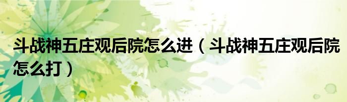 斗战神五庄观后院怎么进(斗战神五庄观后院怎么打)