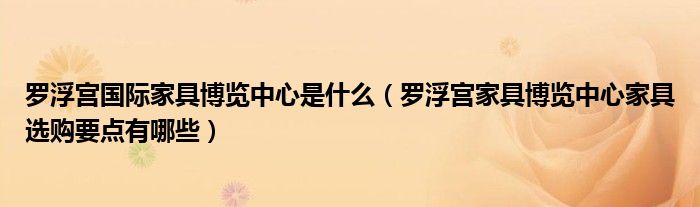 罗浮宫国际家具博览中心是什么(罗浮宫家具博览中心家具选购要点有哪些)