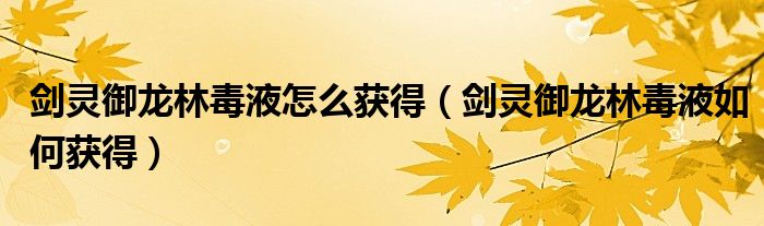 剑灵御龙林毒液怎么获得(剑灵御龙林毒液如何获得)