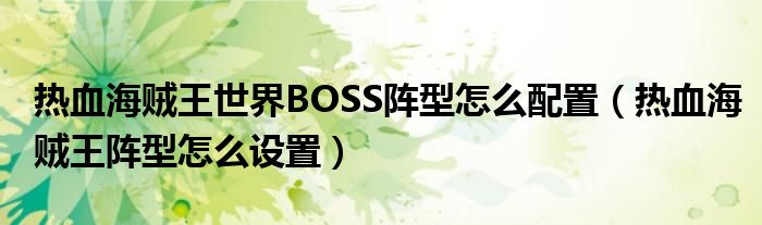 导读 大家好,太太来为大家解答以上问题。热血海贼王世界BOSS阵型怎么配置,热血海贼王阵型怎么设置很多人还不知道,现在让我们一起来看看吧!1