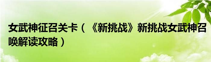 女武神征召关卡(《新挑战》新挑战女武神召唤解读攻略)
