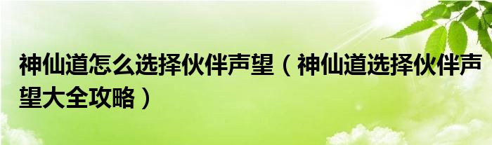 神仙道怎么选择伙伴声望(神仙道选择伙伴声望大全攻略)