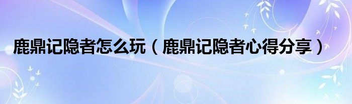 鹿鼎记隐者怎么玩(鹿鼎记隐者心得分享)