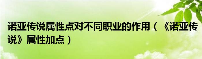 诺亚传说属性点对不同职业的作用(《诺亚传说》属性加点)