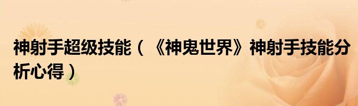 神射手超级技能(《神鬼世界》神射手技能分析心得)
