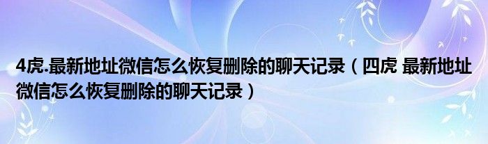4虎.最新地址微信怎么恢复删除的聊天记录(四虎 最新地址微信怎么恢复删除的聊天记录)