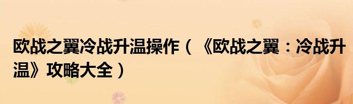 欧战之翼冷战升温操作(《欧战之翼:冷战升温》攻略大全)