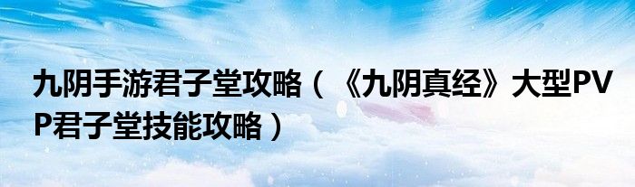 导读 大家好,太太来为大家解答以上问题。九阴手游君子堂攻略,《九阴真经》大型PVP君子堂技能攻略很多人还不知道,现在让我们一起来看看吧!1、