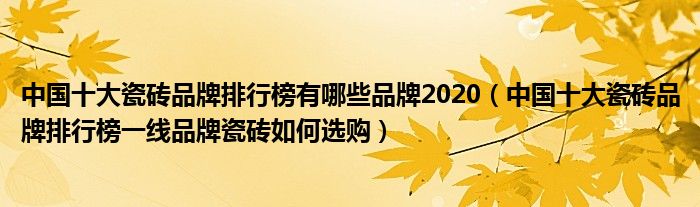 中国十大瓷砖品牌排行榜有哪些品牌2020(中国十大瓷砖品牌排行榜一线品牌瓷砖如何选购)