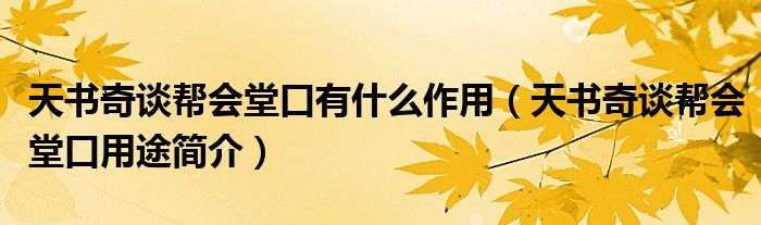 天书奇谈帮会堂口有什么作用(天书奇谈帮会堂口用途简介)
