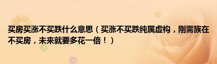 买房买涨不买跌什么意思(买涨不买跌纯属虚构,刚需族在不买房,未来就要多花一倍!)